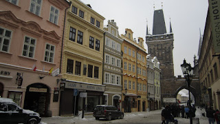 Aamu alkoi kävelyllä Kaarlen sillan yli vanhaan kaupunkiin. Matkalla kävin myöskin Malá Stranan pään siltatornissa ihailemassa vielä hieman sumuisia maisemia. Sillan ylittäminen oli muutenkin sen verran verkkaista, että sen ylitettyäni oli hyvinkin lounasaika. Perinteinen annos nautaa, kermaista kastiketta, leipämykyjä, smetanaa ja karpalohilloa maistui, samoin palanpainikkeeksi tilatut Prazdrojt. Ravintola oli uuden kaupungin puolella Kaarlen aukiolla, missä luminen maisema ja etenkin uuden kaupungintalon torni näyttivät miellyttävältä.